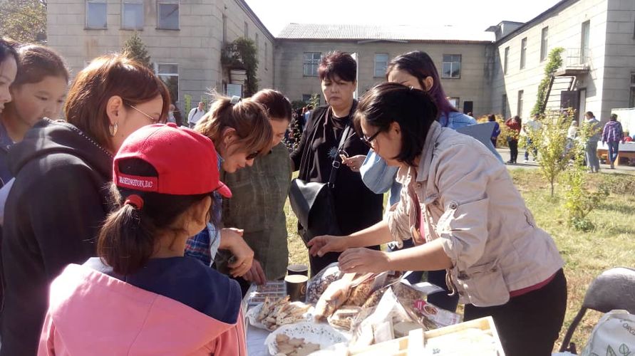 Көргөзмө-жарманкеге ботаникалык бакта өстүрүлгөн жемиш бактардын мөмөлөрү, дары чөптөр, азык-түлүк продукциялары коюлду. Мындан тышкары келген маймандар кол өнөрчүлөрдүн эмгектерине күбө болушту.