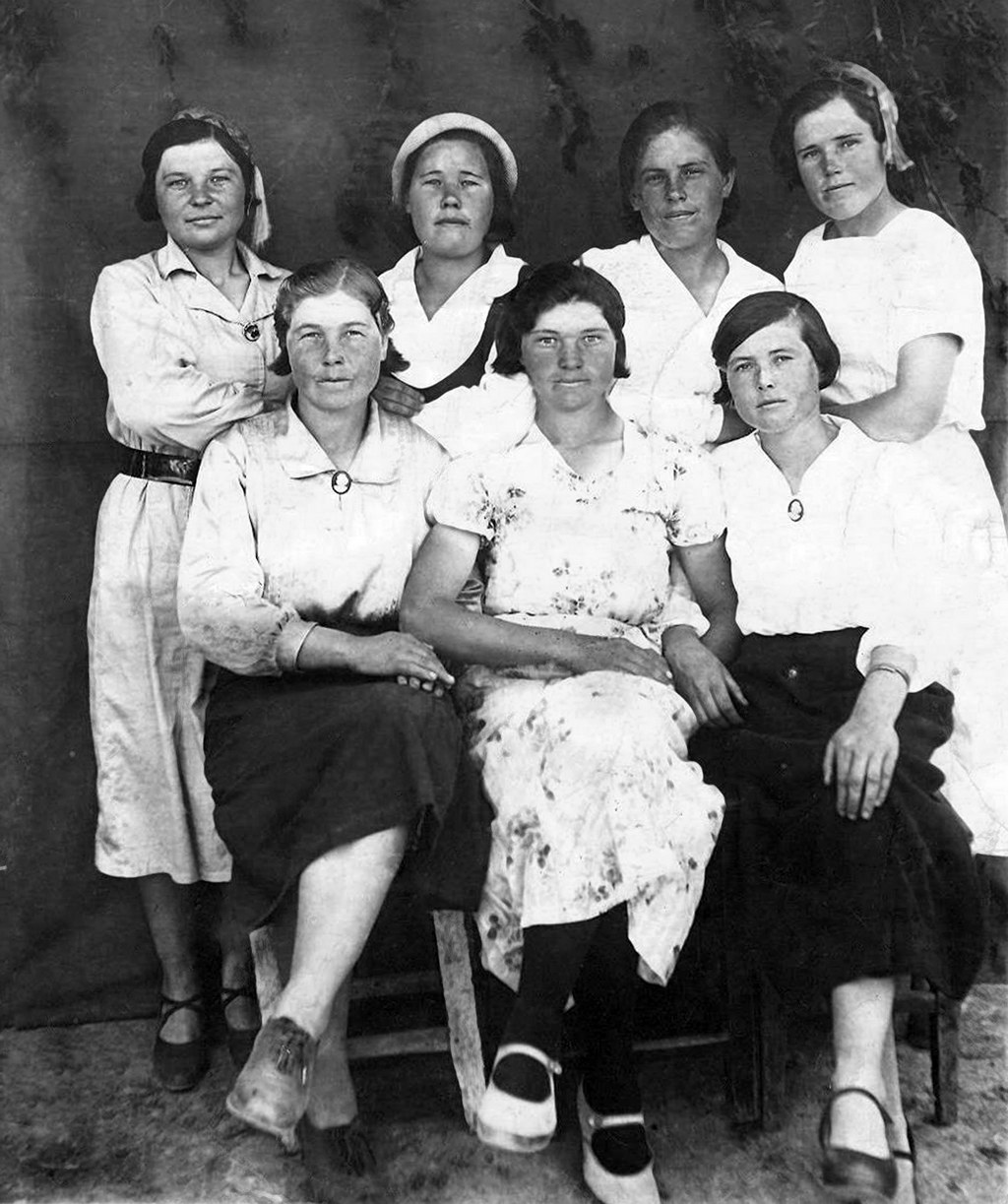 «Позже 16-летних девчонок, в том числе и маму, набрали в производственную бригаду и стали учить пахать землю. А в 1940-м организовали курсы трактористок. Семь простых девушек: Мария Крицкая, Матрена Остроух, Олимпиада Щавлева, Аграфена Елизарова, Софья Понтюхова, Анна Гончаренко, Матрена Колмогорова заменили мужчин, ушедших на фронт. «Семеро смелых» - так по названию любимого в те годы фильма прозвали девушек, - добавляет Ольга Васильевна. – Они, и правда, во всех начинаниях были смелыми, передовыми, находчивыми. Хоть порой им было очень трудно, но задания бригадиров старались выполнять. Если вдруг трактор заглохнет, то девушки закрывались и прямо в нем ночевали, пока не приедет бензозаправщик. Шакалов боялись».
