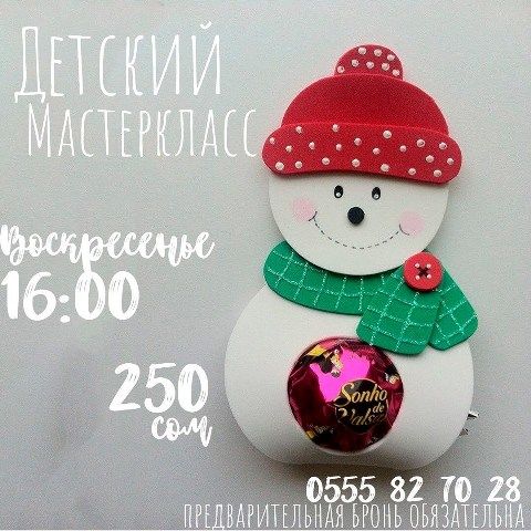 Детишки смастерят милого снеговика из подручных материалов. После мастер-класса малышей ждут традиционное чаепитие и кукольный театр. Регистрация по номеру 0555827028.