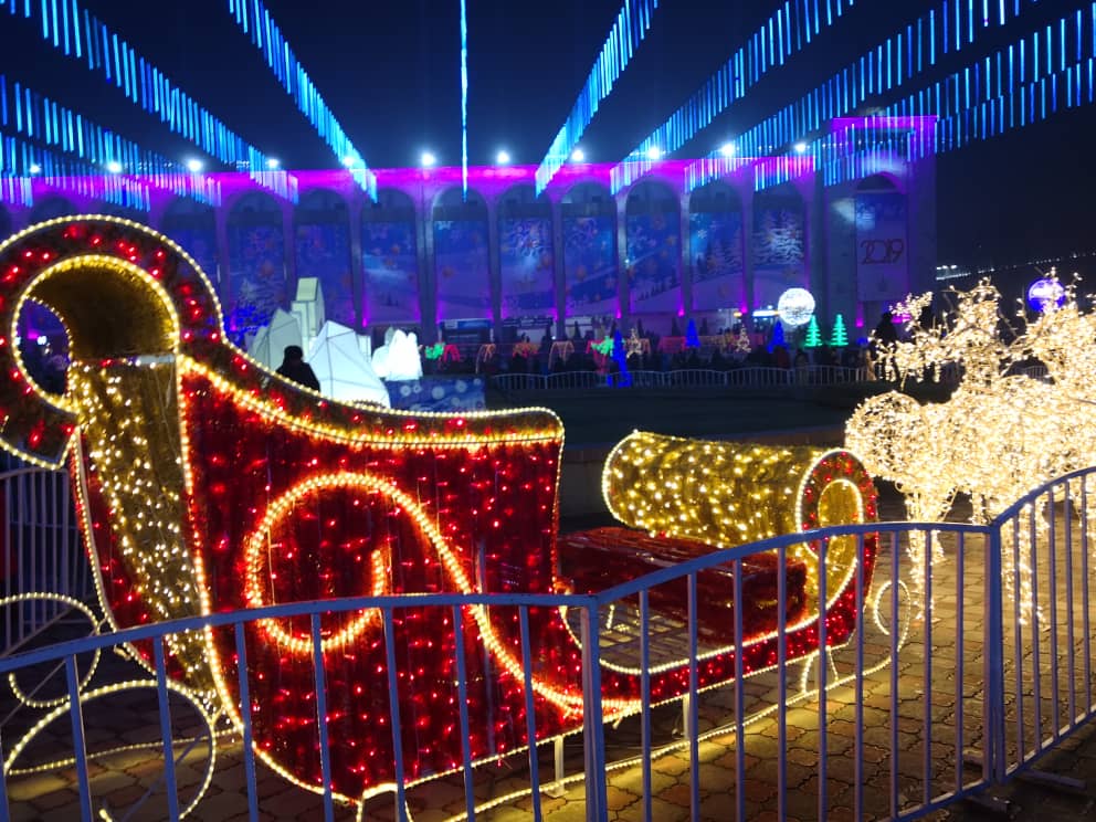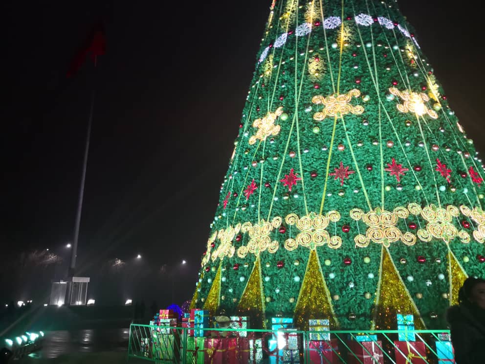 Главная елка страны та же, что и в прошлом году. Муниципалитет решил сократить расходы на новогоднее оформление, постаравшись обойтись силами муниципальных служб. На новогоднее убранство потратили 6,5 миллиона сомов.