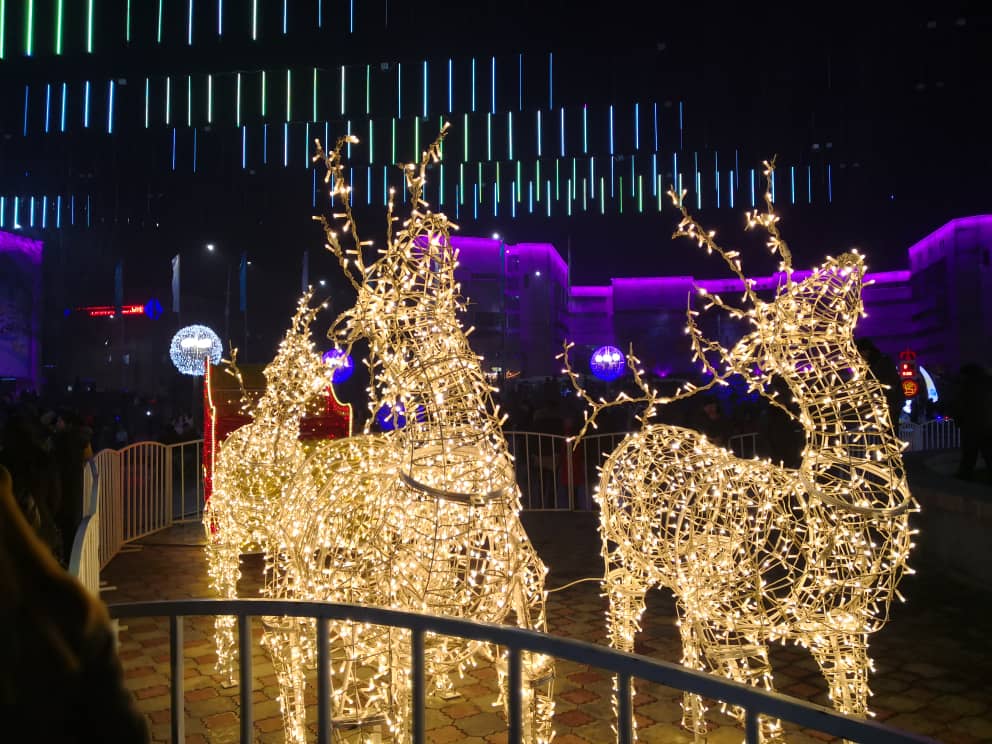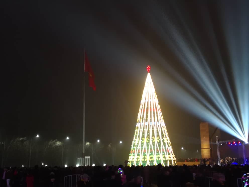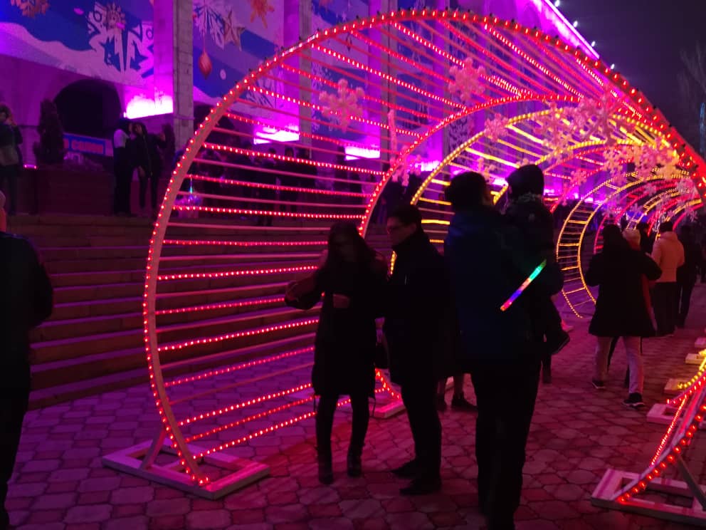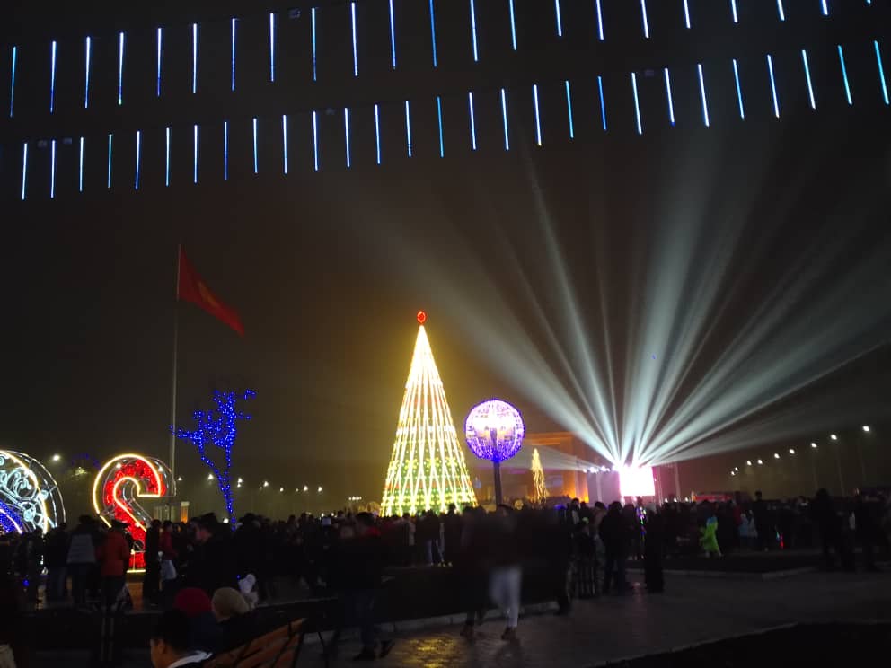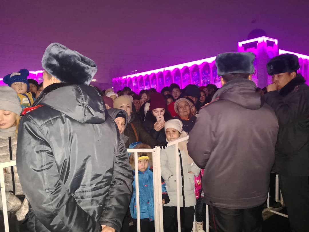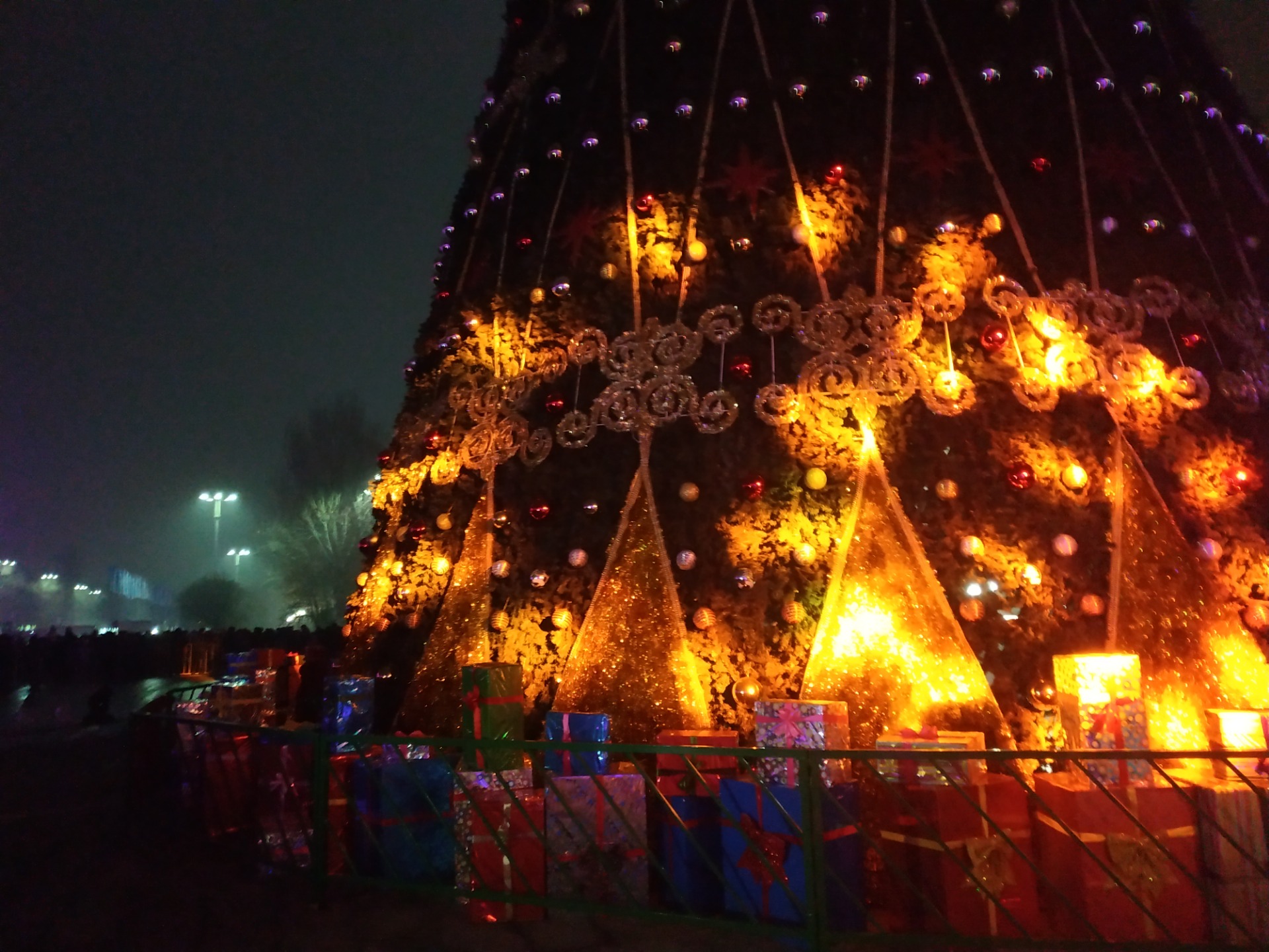 На центральной площади Ала-Тоо в Бишкеке зажгли главную елку страны. Праздник столичный муниципалитет назначил на 19.00, но люди начали приходить задолго до назначенного времени.