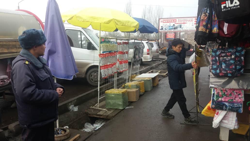 Сотрудники Ленинского акимиата ликвидировали нелегальные торговые точки на улицах Бейшеналиевой, Киевской, Кулиева, Токтогула, проспекте Чуй. В ходе рейда районные службы и работники милиции столкнулись с антисанитарией, воровством электроэнергии, препятствованием автомобильному движению. Сотрудники УОБДД составили более 30 административных протоколов о нарушении стихийными торговцами Правил дорожного движения.
