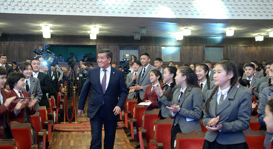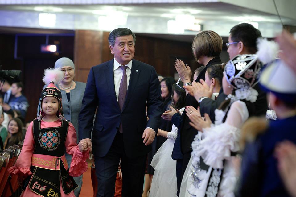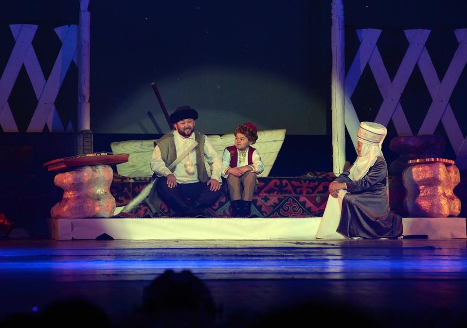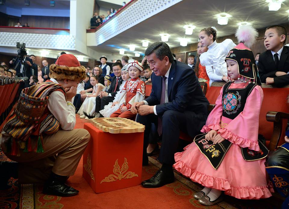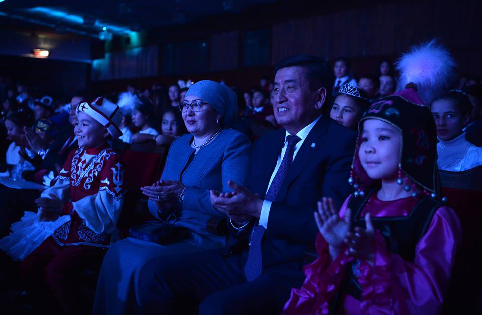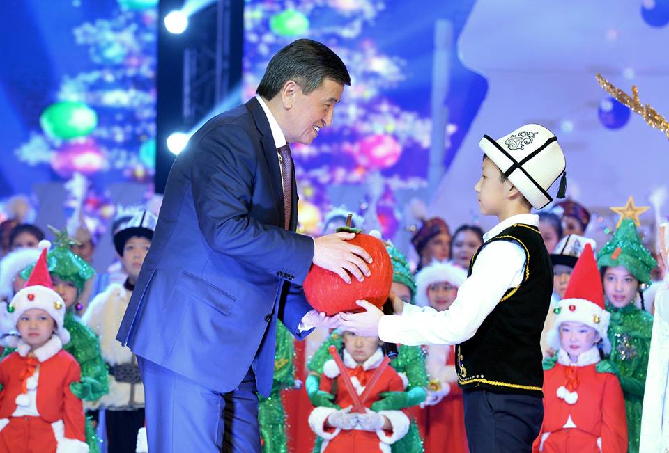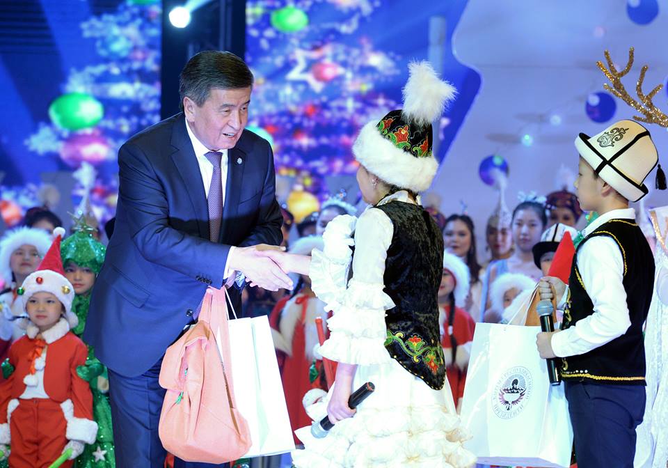Участникам елки показали театрализованное представление отрывок из творчества писателя Чингиза Айтматова. Герой постановки мальчик по имени Сейит сыграл с Сооронбаем Жээнбековым в тогуз коргоол, чтобы победить великана. В конце праздничного мероприятия дети подарили главе государства «красное яблоко» на удачу и обещали хорошо учиться.