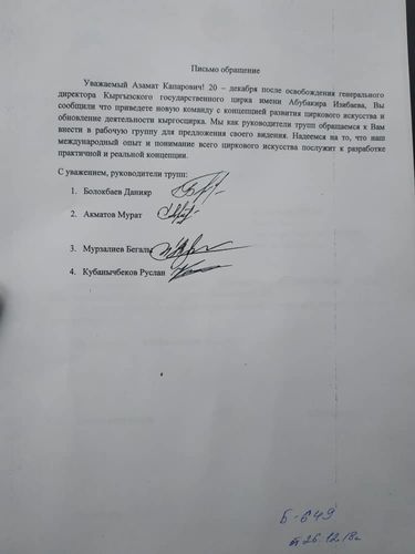 Один из подписавшихся под обращением руководителей творческих трупп Данияр Болокбаев рассказал 24-kg.com о причинах такого письма.