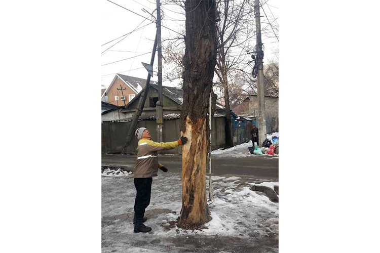 Поэтому Бишкекзеленхоз круглый год производит санитарную обрезку и снос аварийных деревьев, чтобы вместо них со временем посадить молодые деревца.