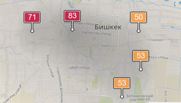 Состояние воздуха в Бишкеке вызывает обеспокоенность экологов и горожан. MoveGreen и активист из Алматы Павел Александров собрали для столицы датчики, фиксирующие загрязнение воздуха, и привязали их к карте.