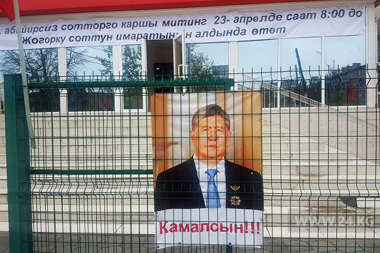 По их данным, социал-демократы просили снять с забора, который возведен по периметру здания, портрет экс-президента страны Алмазбека Атамбаева. Над портретом атамекеновцы повесили надпись «Атамбаева за решетку».