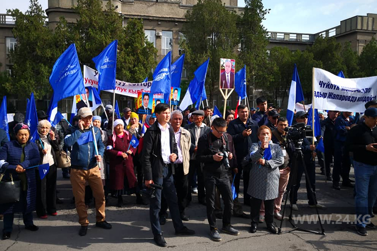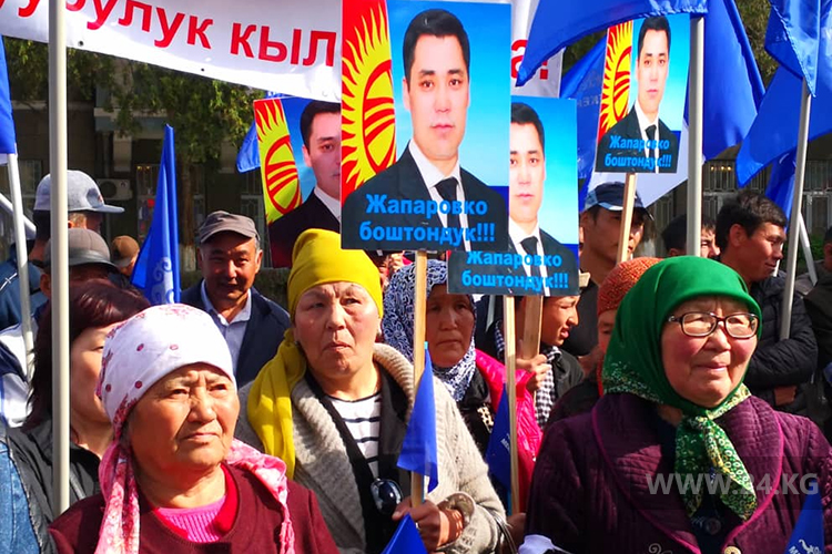 Около 150 сторонников бывшего парламентария требуют от судей отпустить его на свободу. По словам выступающих, Садыр Жапаров всегда боролся с коррупцией и беспокоился об экологии.