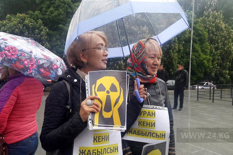 Представители Партии зеленых собрались в Бишкеке и выступают против добычи урана. Ранее суд запретил проводить митинг на площади Ала-Тоо, обосновав это тем, что там запланировано мероприятие.