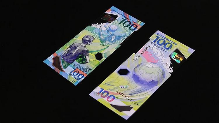 На российской купюре изображены мальчик с футбольным мячом и легендарный вратарь Лев Яшин, а также мяч, символизирующий земной шар. Банкноту выпустили к чемпионату мира в РФ.