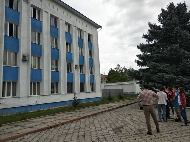 У здания полномочного представителя правительства в Чуйской области журналисты собрались на митинг с требованием отставки главы региона Туйгунаалы Абдраимова.