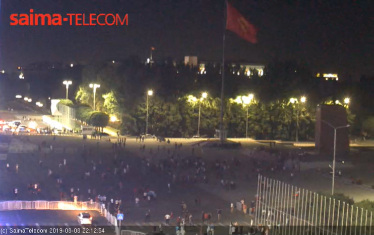 01.35 На площади Ала-Тоо спокойно: толпы не видно, дежурят сотрудники правоохранительных органов, машины беспрепятственно ездят по проспекту Чуй.