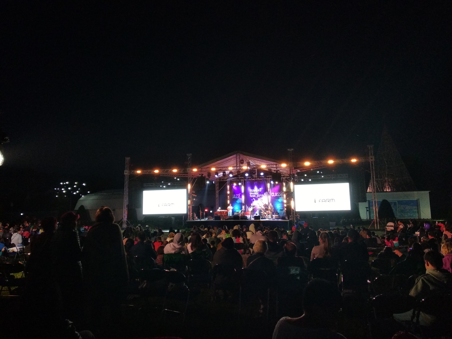 Мы пришли в числе первых. Поэтому найти свободное и удобное местечко не составило труда. Однако уже буквально через полчаса практически вся территория вокруг сцены была занята любителями послушать джаз.
