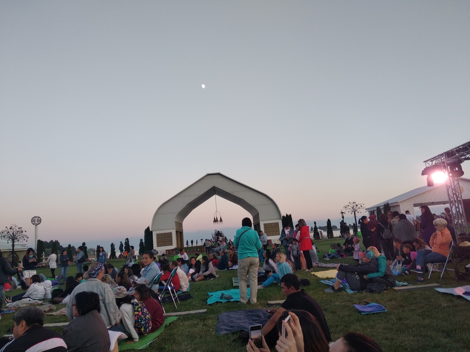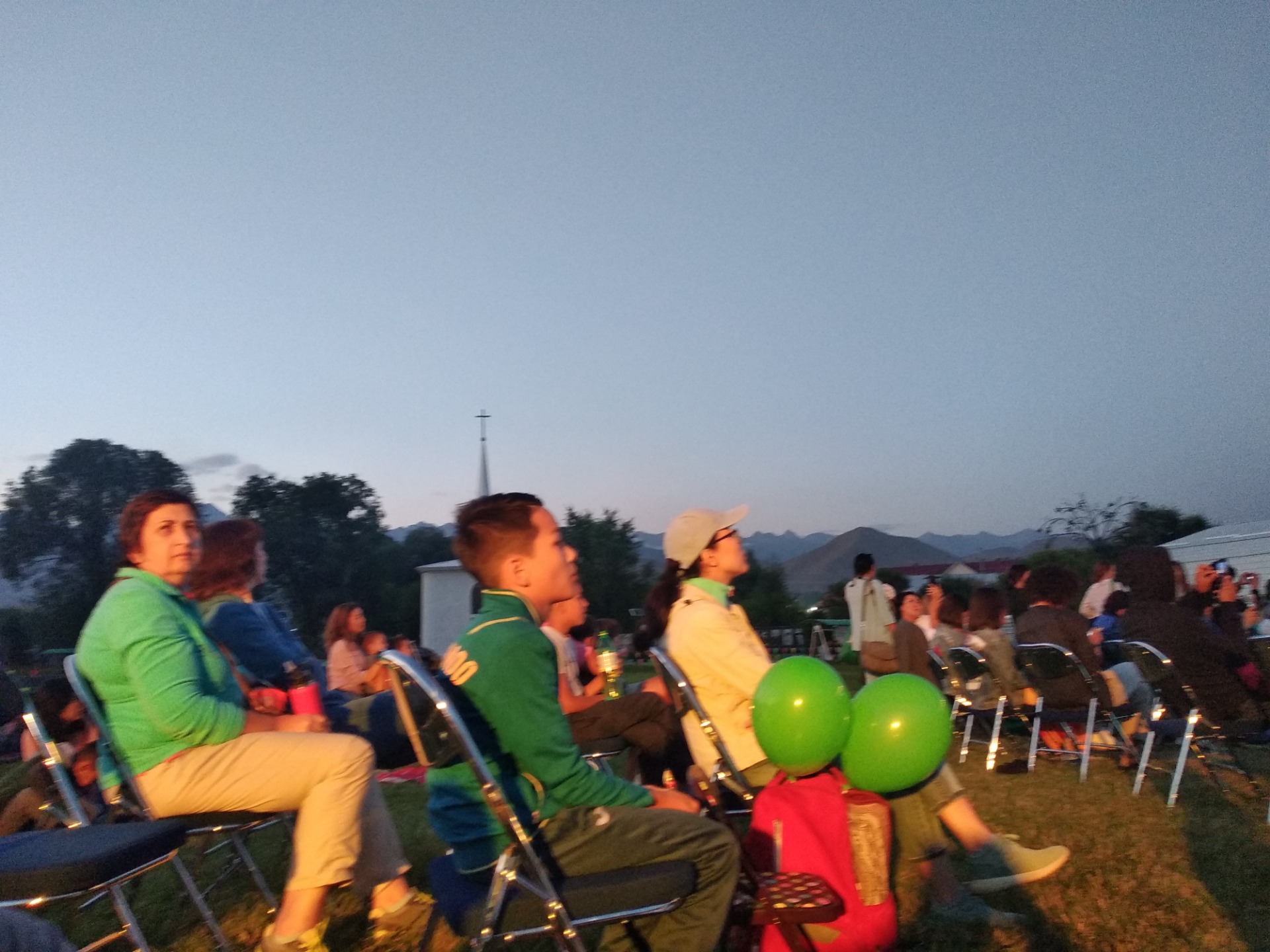 Многие были с детьми. И это несмотря на то, что августовские вечера на Иссык-Куле уже весьма прохладные. Организаторы заранее предупредили, что лучше одеться потеплее и взять с собой пледы.