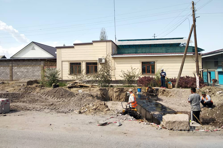 Кое-где на дороге ремонтируют водоотводные каналы. Новые сооружения устанавливают практически впритык к жилым домам. Однако местные жители на такие неудобства не жалуются, говорят, каналы здесь были и в советское время. А сейчас их просто обновляют, чтобы избежать подтоплений в будущем.