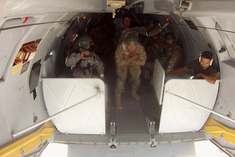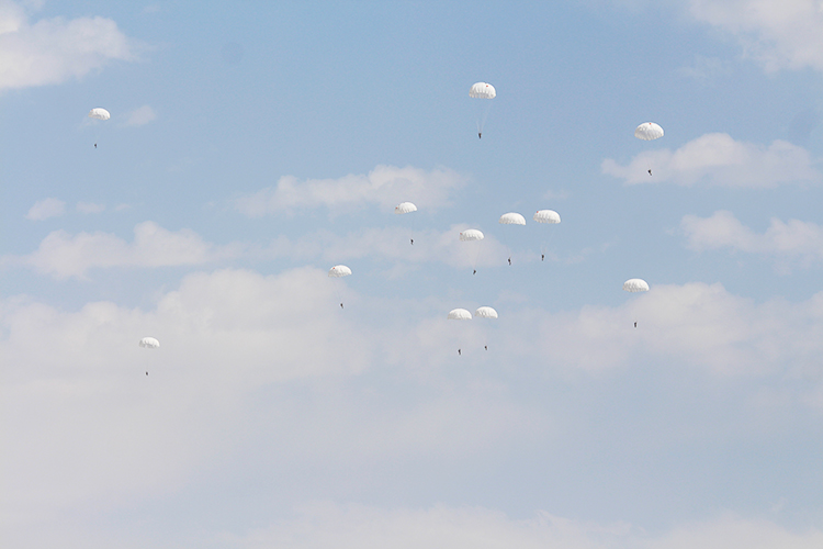 По его данным, над аэродромом военно-воздушной базы из вертолета Ми-8МТ десантировались более 60 военнослужащих, из них 20 человек прыгали первый раз.