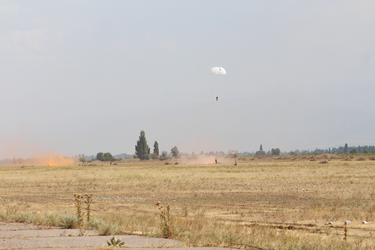 На базе войсковой части 23565 состоялись учебно-тренировочные прыжки с парашютом с вертолета Ми-8МТ и самолета Ан-26 с высоты 800 метров. Об этом сообщило управление информационного обеспечения Генерального штаба ВС КР.