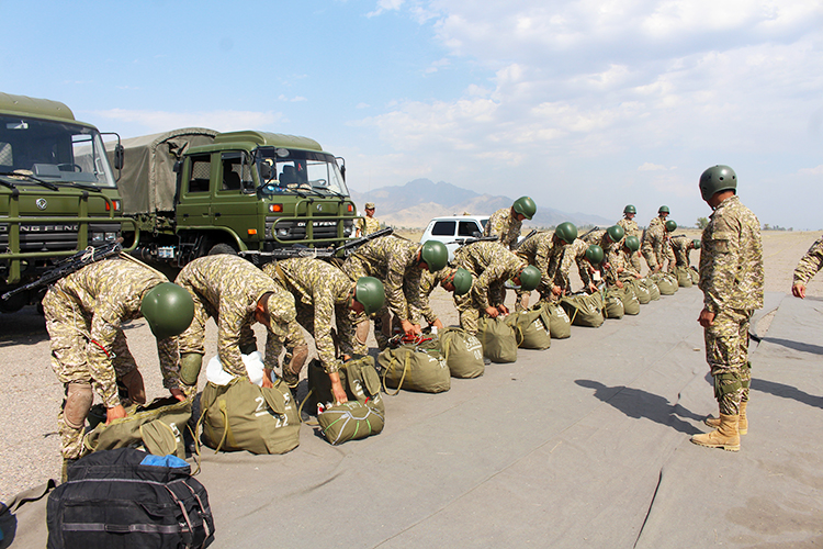 Учения десантников с прыжками из вертолета и самолета прошли в Кыргызстане