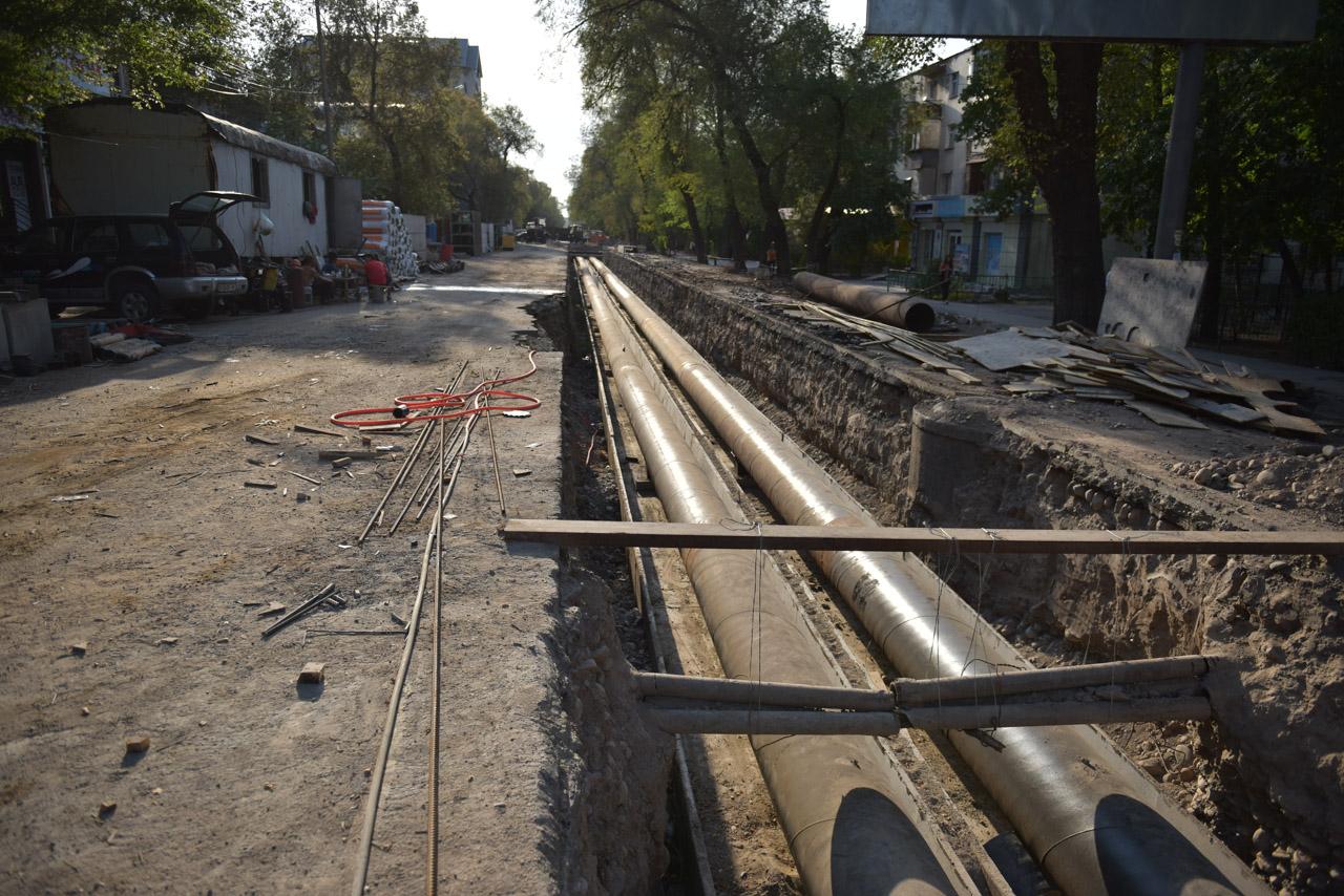 Ремонт теплотрассы на улице Токтогула проводит компания «Юнис Курулуш» по заказу ОАО «Бишкектеплосеть».