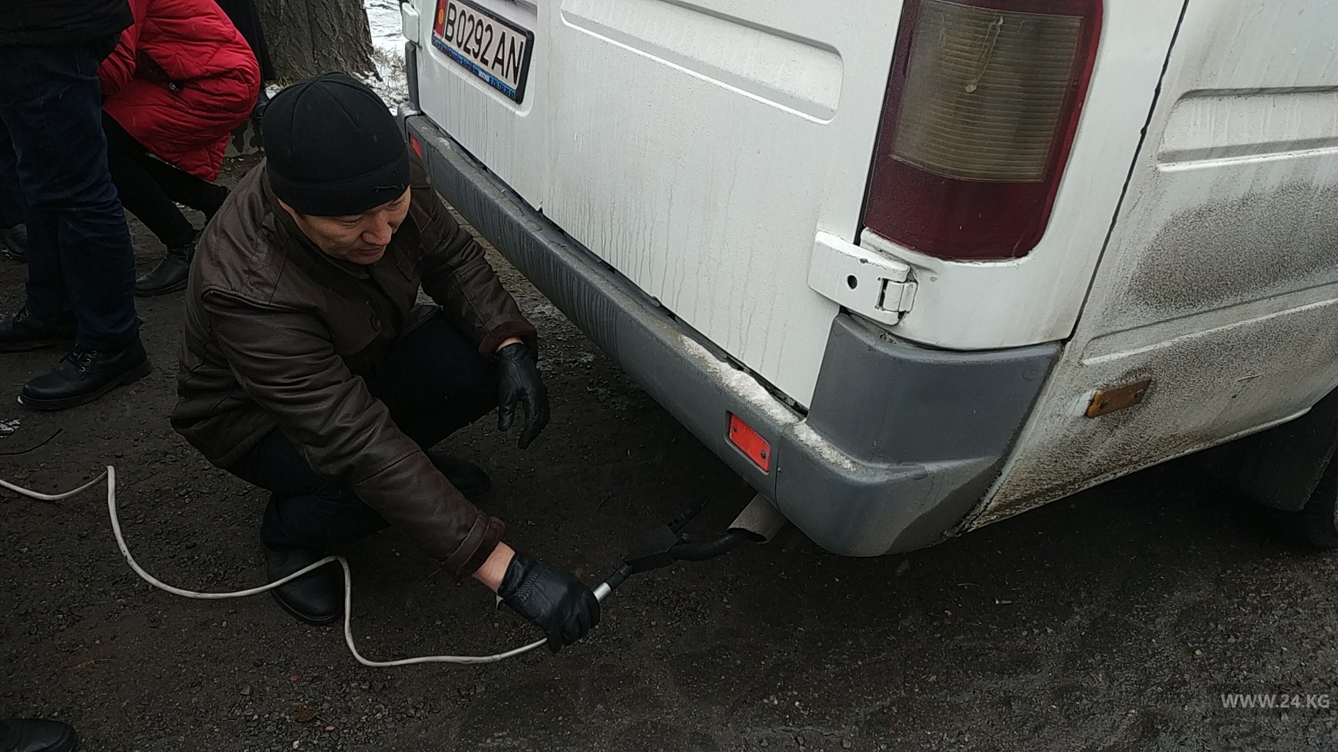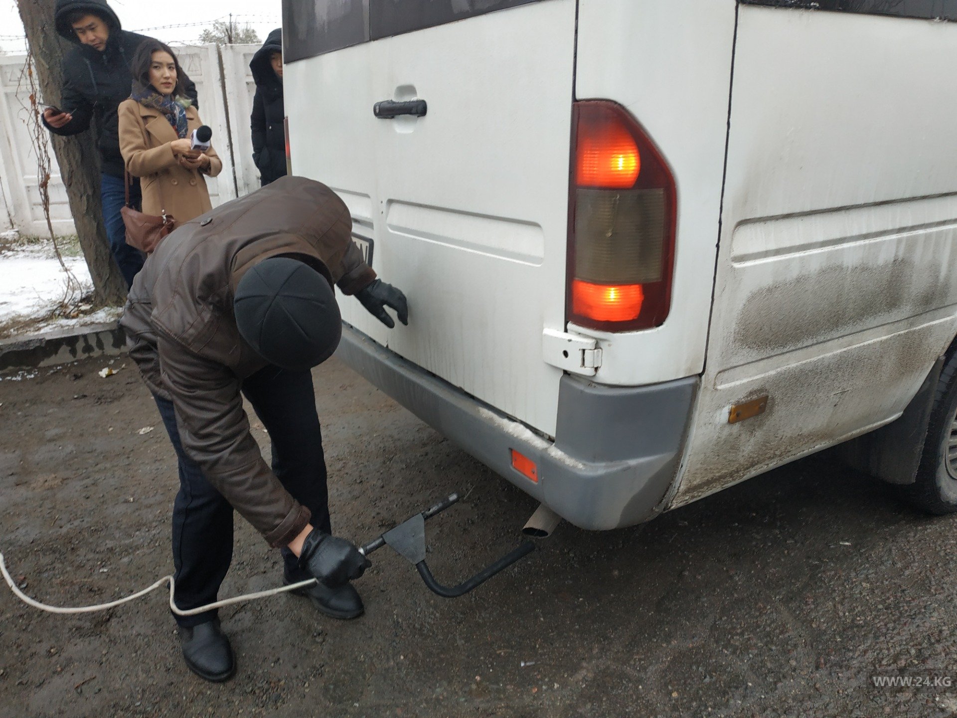 «В выхлопную трубу вставляем оптический датчик, который измеряет дымность отработавших газов автомобилей. В нем светоприемники, которые фиксируют коэффициент преломления световых лучей. Другими словами, как сильно проходящий дым заслоняет свет. Этот параметр не должен превышать 50 процентов», — объяснил старший инспектор ГИЭТБ Анарбек уулу Медетбек.