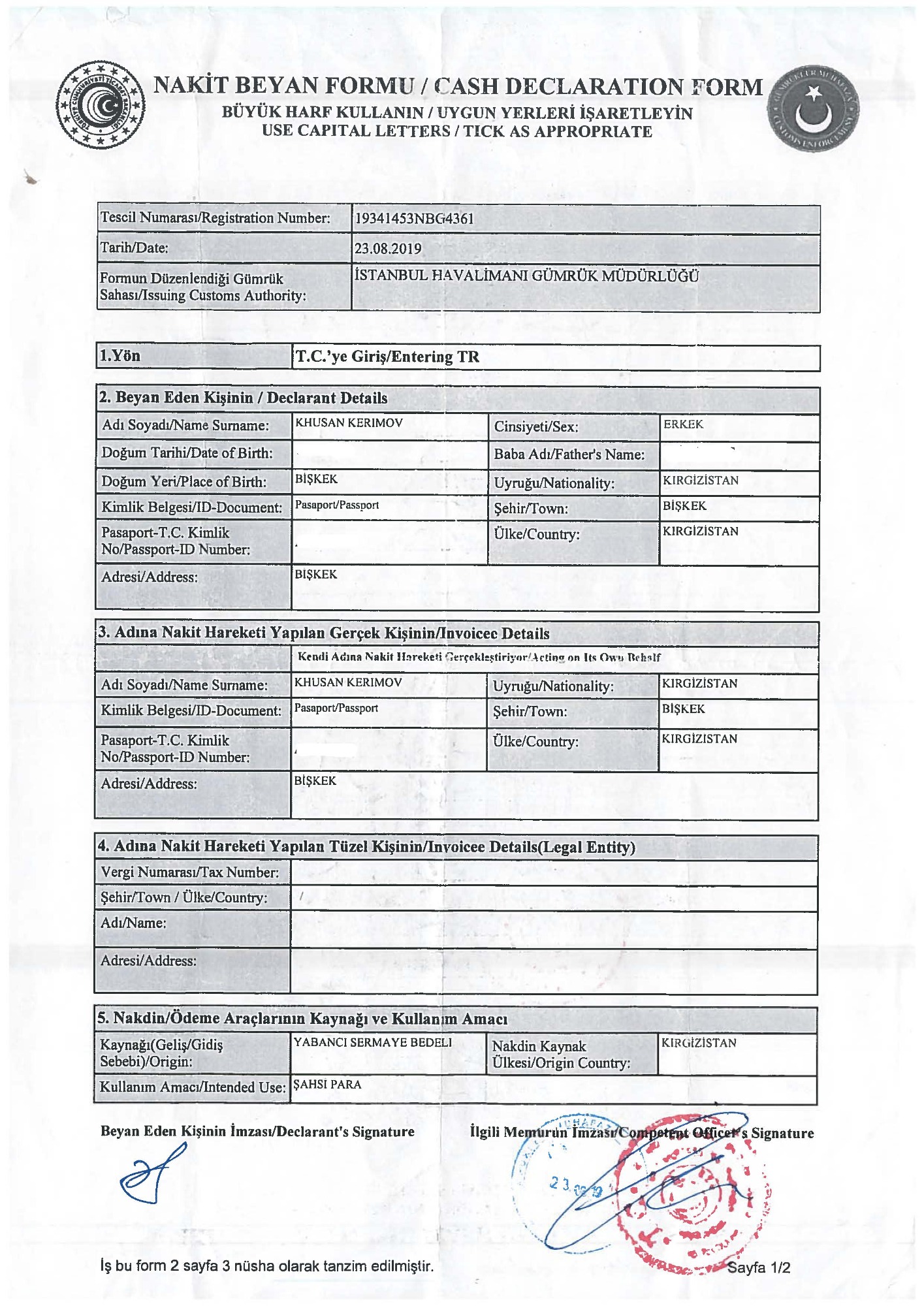 Его куратором был Айеркен Саймаити, убитый 10 ноября в Стамбуле. Он организовал целую сеть курьеров. Выводом денег из КР под его руководством занимались десятки парней и молодых мужчин. Они регулярно летали рейсом Бишкек — Стамбул и перевозили наличные в сумках. В каждой сумке было целое состояние — от нескольких сотен тысяч до нескольких миллионов долларов.