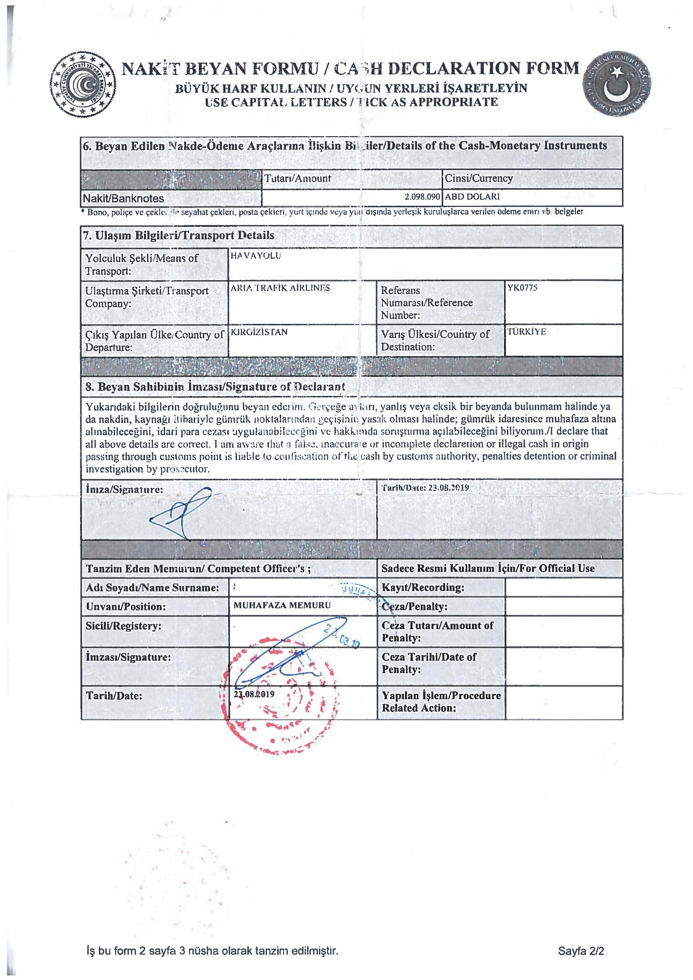 «Эти деньги скрыты. Во-первых, от таможенных сборов. Во-вторых, от налогов. И, в-третьих, от службы финансовой разведки», — цитируют журналисты бывшего начальника Службы собственной безопасности аэропорта «Манас» Самата Исабекова.