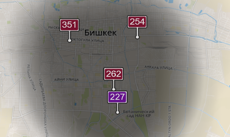 Экологическое движение «МувГрин» установило несколько датчиков в Бишкеке, которые замеряют содержание мелких частиц РМ2.5 в воздухе. Результаты замеров можно наблюдать в режиме реального времени.
