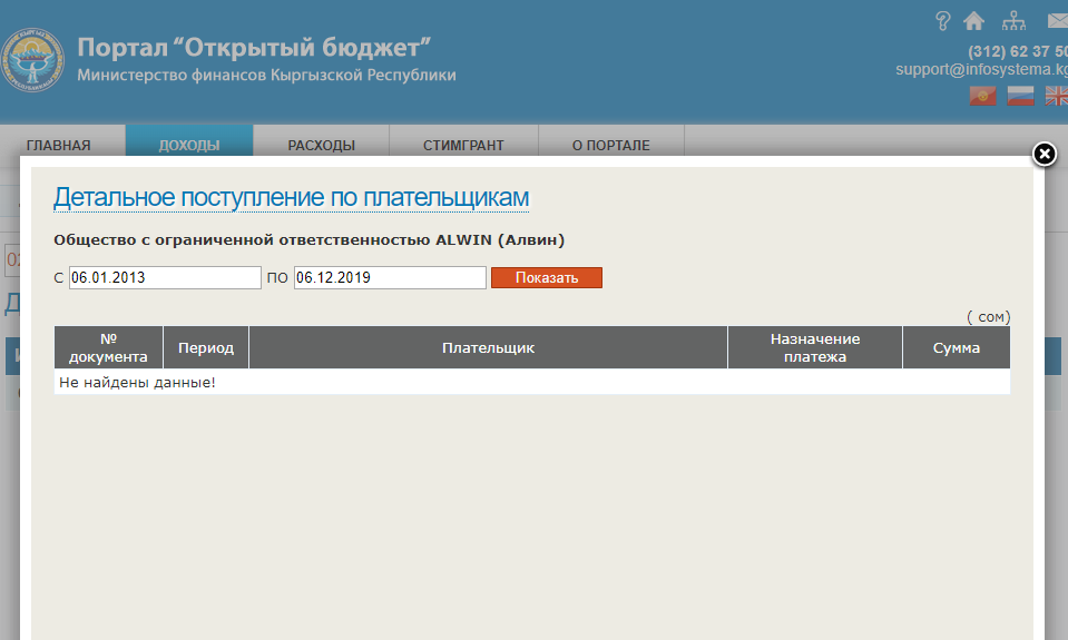 ОсОО ALWIN («АЛВИН») учредил в мае 2008-го и с тех пор руководит им Касым Курбанов. Чем занимается организация, неясно, как и то, сколько налогов она уплатила за 11 лет работы. Данных о перечислении средств в бюджет нет.