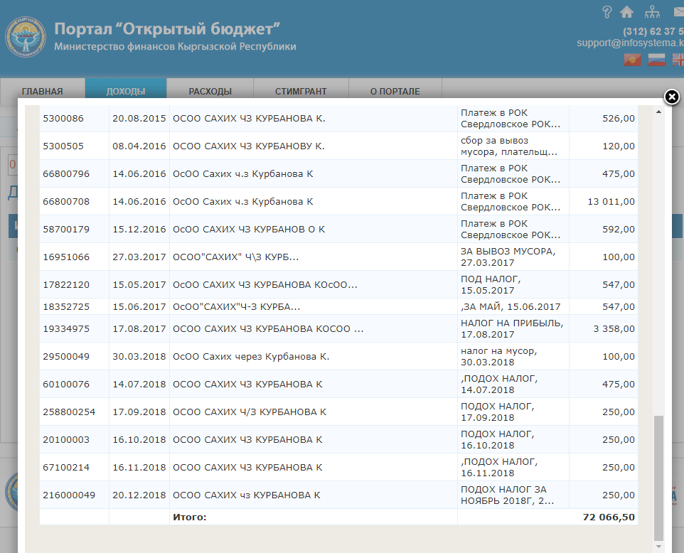 С 2013 по 2018 год представительство ОсОО «Торговая компания по импорту и экспорту «Абу-Сахий», Синьцзян» в Кыргызстане заплатило 75 миллионов 27,6 тысячи сомов налогов и платежей.