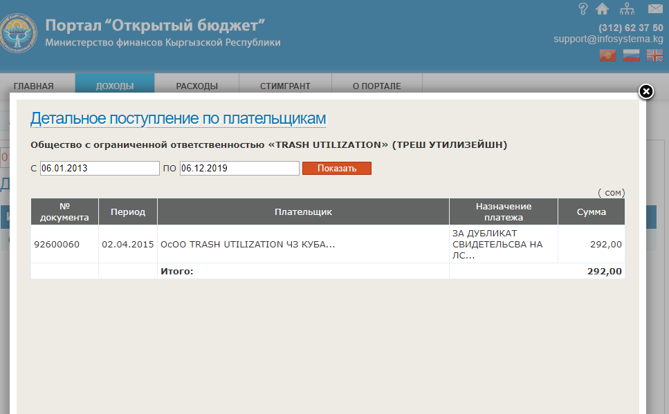 С 2013 по 2018 год ОсОО «Абдыраз» заплатило налогов на 430 миллионов 691,2 тысячи сомов.