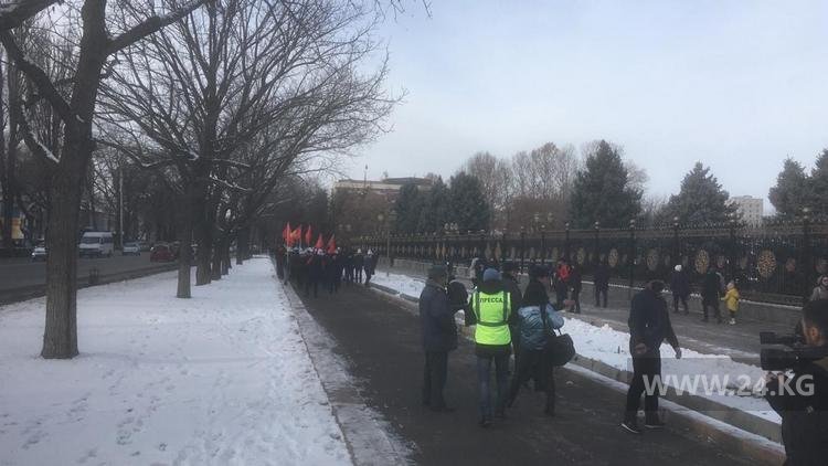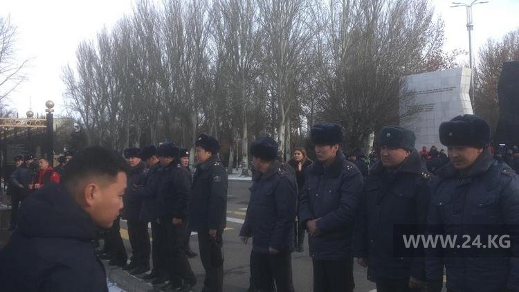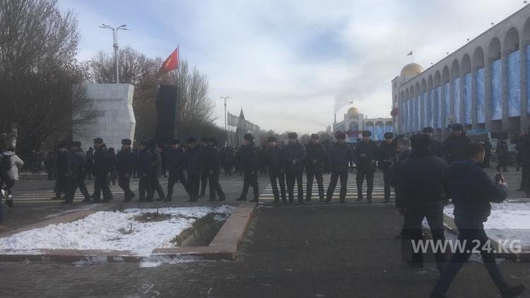 Милиция разделила участников и противников митинга в поддержку СМИ и против коррупции, который проходит на площади Ала-Тоо.