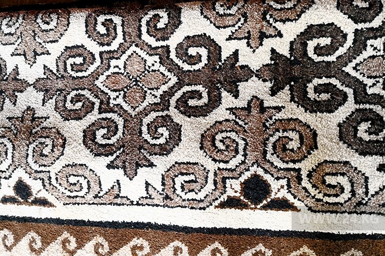 Один из древнейших узоров, связанный с юртой. В нем отражены все необходимые предметы хозяйства. По словам мастериц, узор передает не только быт, но и историю, теплоту очага и единство родных и близких людей. Узор универсальный и ковры с ним подойдут всем.