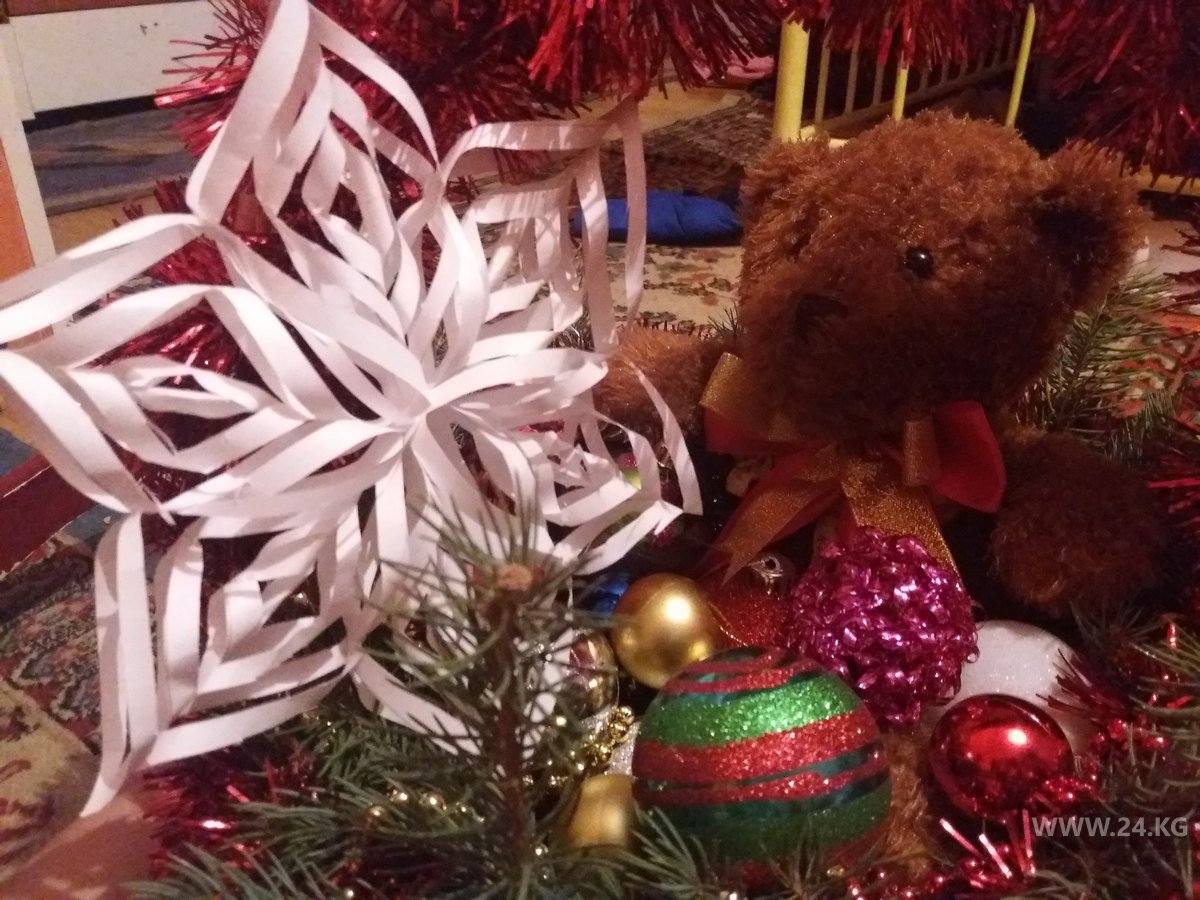 Квартира у нас маленькая. Поэтому большую елку мы обычно ставим в зале, а вот кухню предпочитаем украшать мини-елочками собственного изготовления. В прошлом году впервые решили сделать небольшую елку из мишуры. Идея так понравилась дочке, что в этом году она создала целую композицию.