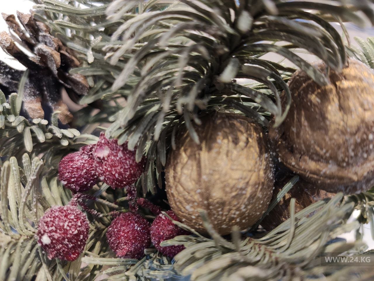 Повторили мы в этом году и затею с созданием новогодних венков. Для кухни сделали венок из лимонов и пряностей, которые остались с прошлого года. Так что затраты были минимальными. Всего 70 сомов на покупку лимонов.