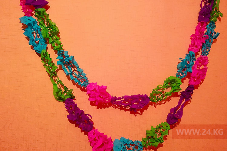 Нам понадобилась бумага четырех цветов, ножницы и клей. В этом году мое участие свелось только к показу видео. Дочь самостоятельно вырезала заготовки и собирала гирлянду. Не все круги, конечно, были идеально красивыми и ровными. Иногда части гирлянды приходилось переклевать. Зато ребенок доволен, что сам, без помощи взрослого, создал такую красоту. Гирлянда заняла место на стене в кухне.
