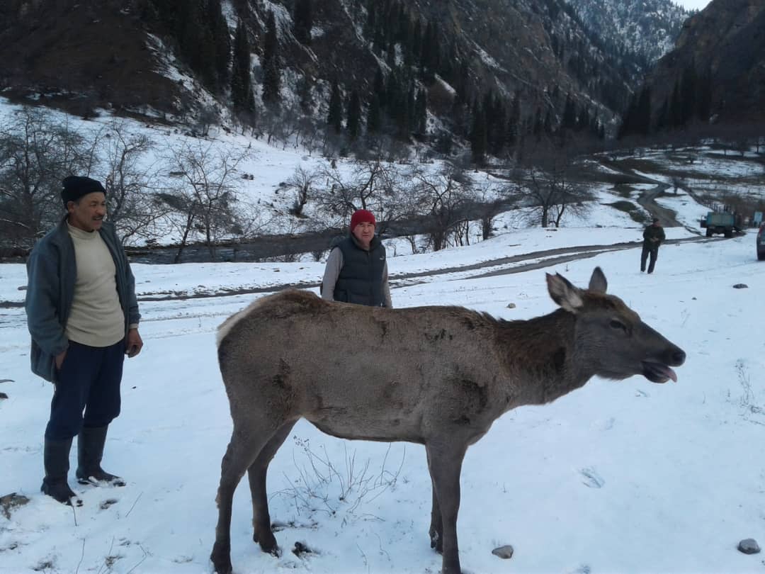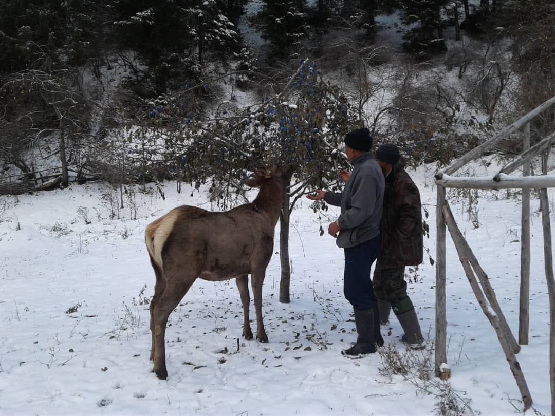 «Маралы под постоянным наблюдением сотрудников госагентства. Два марала периодически переходят на территорию Сары-Челекского биосферного заповедника. Один, привыкший к ручному выкармливанию, часто спускается в ближайшее село Товар-Сай, и периодически сотрудники агентства загоняют его обратно в лесхоз», — отметили в ГАООСиЛХ.