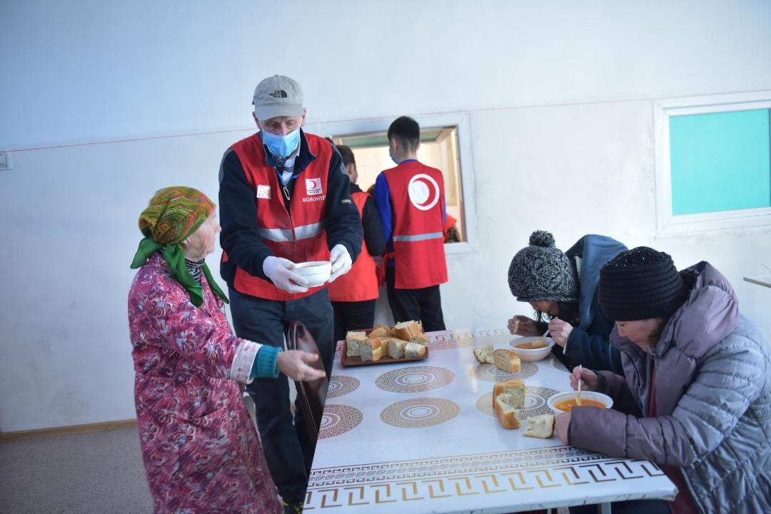 Посол Великобритании в Кыргызстане Чарльз Гарретт совместно с волонтерами Красного Полумесяца и управлением социального развития мэрии Бишкека покормил постояльцев муниципального центра «Коломто» горячим гороховым супом.