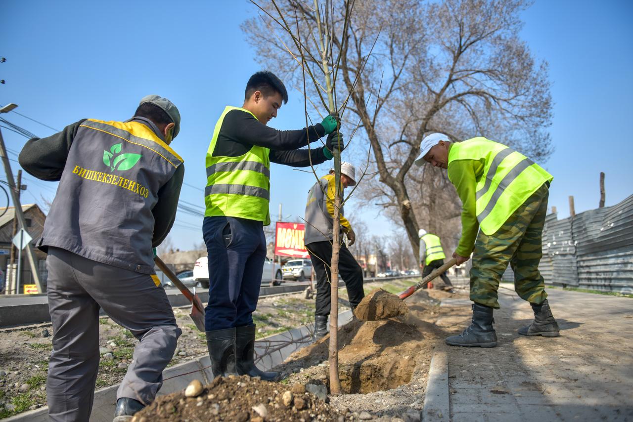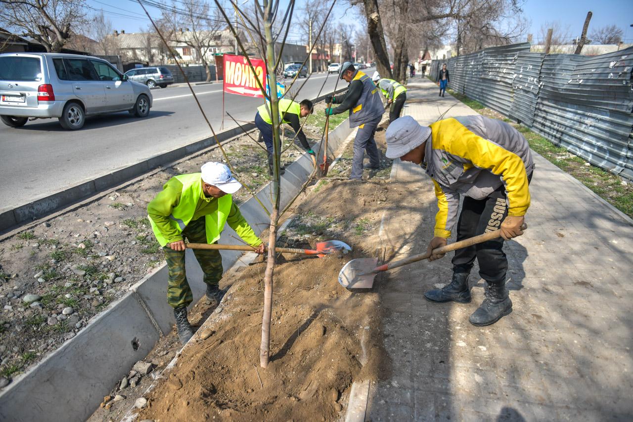 Бишкекзеленхоз приступил к весенним посадкам деревьев. По улице Тоголока Молдо от проспекта Жибек Жолу до улицы Саадаева появились 50 саженцев клена, еще 80 появились на улице Орозбекова до улицы Щербакова.