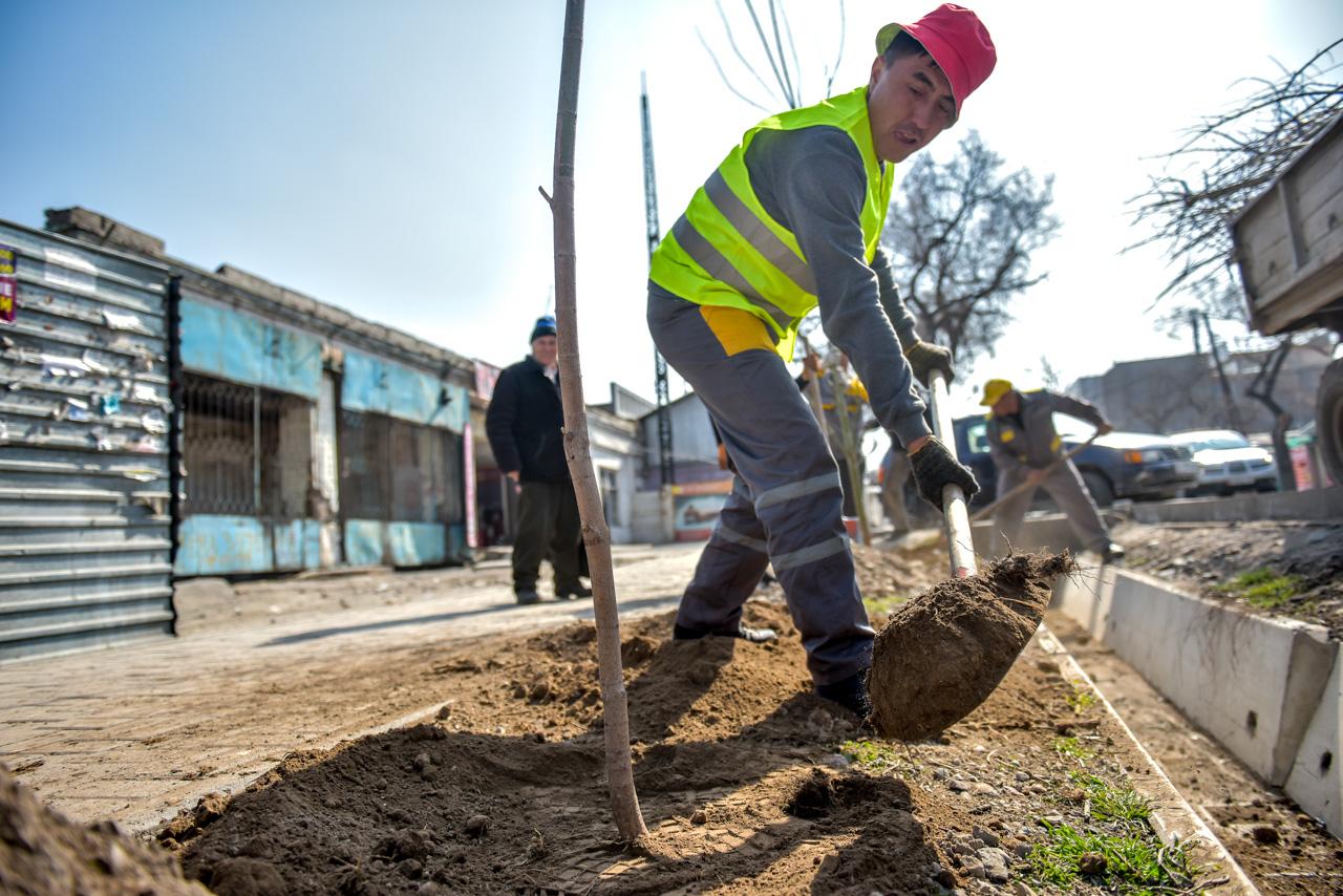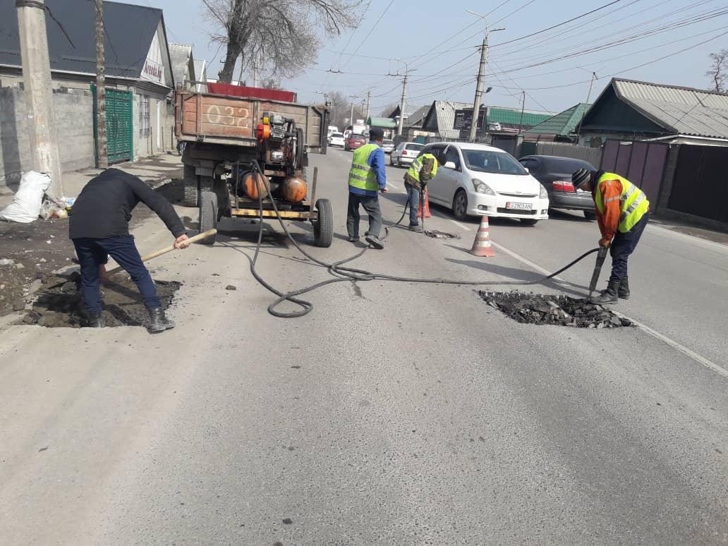 В Бишкеке начали ямочный ремонт дорог и посадку деревьев. Об этом сообщили в пресс-службе столичной мэрии.