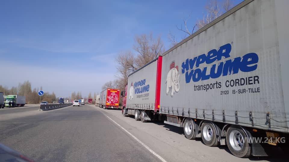 На КПП на границе с Казахстаном скопились большегрузные машины. На пунктах пропуска «Кен-Булун» и «Ак-Тилек» простаивают десятки фур. Их не пропускают на территорию Казахстана.