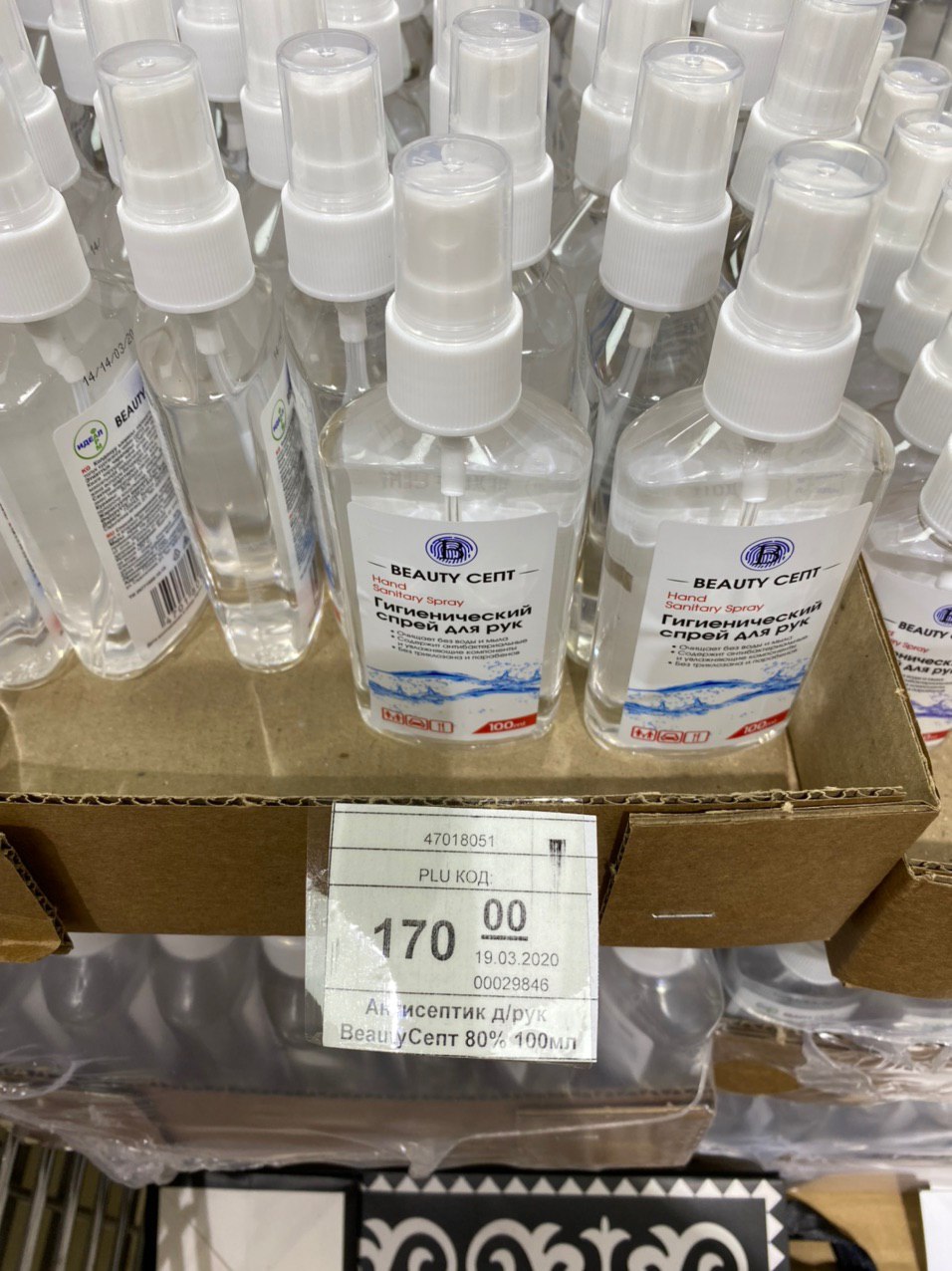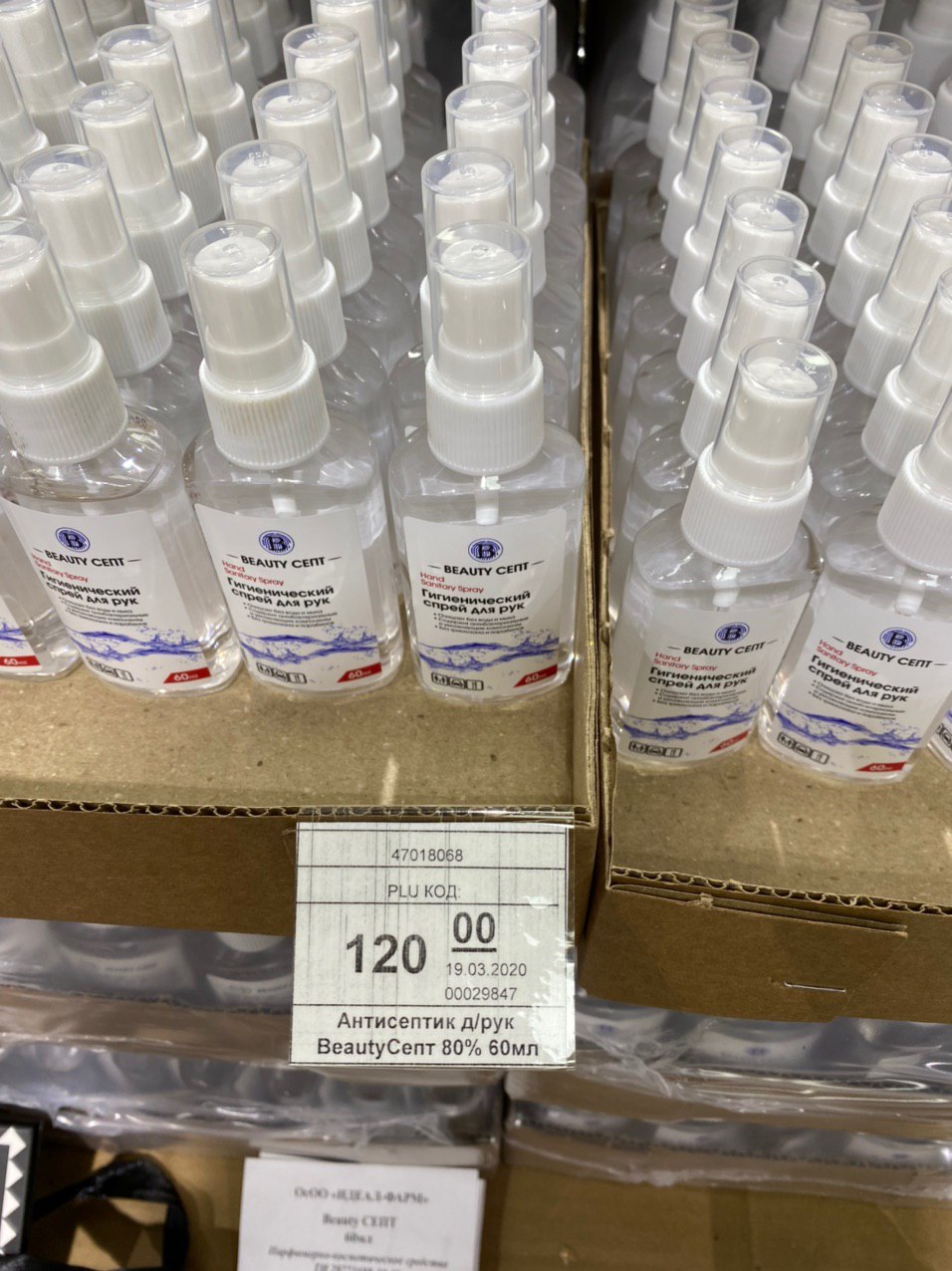 Антисептики в аптеках и гипермаркетах продолжают дорожать. Фото прислал читатель 24-kg.com.