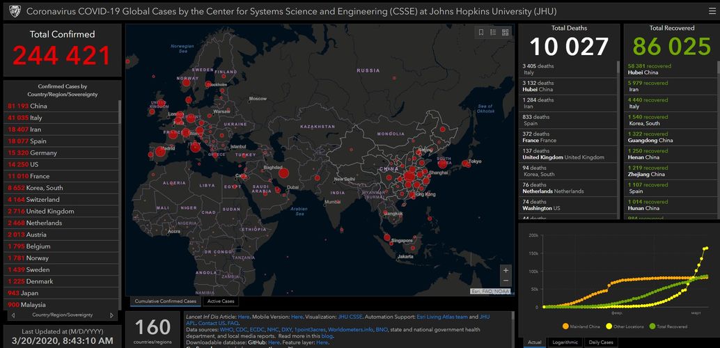 Между тем в мире тоже растет количество зараженных. Случаи заболевания уже зарегистрированы в 160 странах.