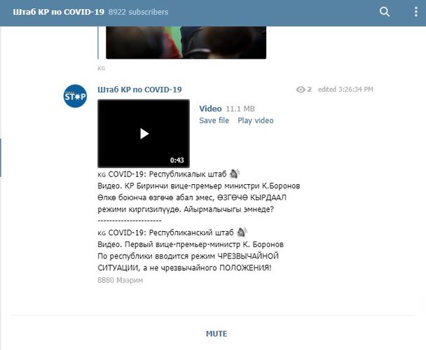 По всей республике вводится режим чрезвычайной ситуации. Об этом сообщается на Telegram-канале Республиканского штаба по коронавирусу, где разместили видеообращение первого вице-премьер-министра Кубатбека Боронова.