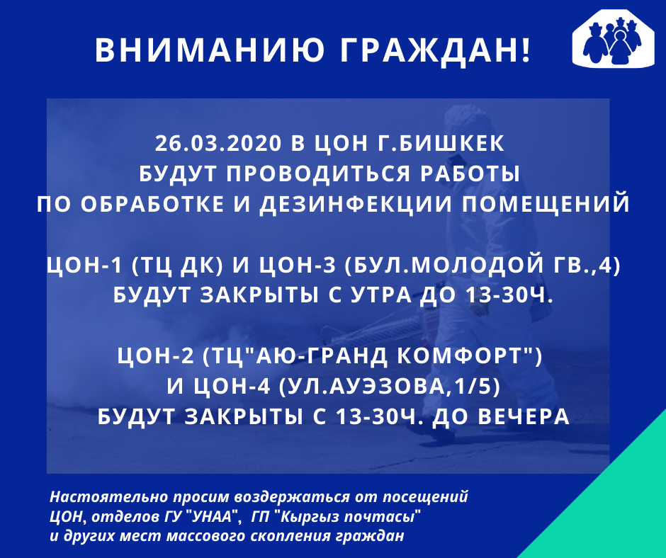 Центры обслуживания населения в Бишкеке сегодня временно закроют для дезинфекции. Об этом сообщила пресс-служба ГРС КР.
