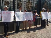 «Мы уже час стоим, и хоть бы один представитель аппарата президента или Жогорку Кенеша вышел. Мы не требуем кого-то наказать, а просим не трогать Конституцию. Я предлагаю зайти и озвучить наши требования, может быть, нас не слышат за толстыми стенами. Через забор прыгать не будем», - заявил гражданский активист Мавлян Аскарбеков.