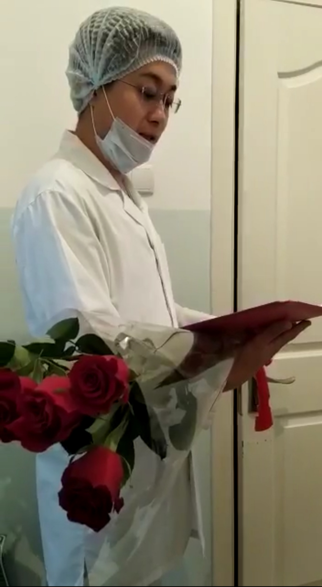 От имени коллегии МВД главе Чуйской милиции вручили поздравительное письмо и цветы в госпитале, где он находится.