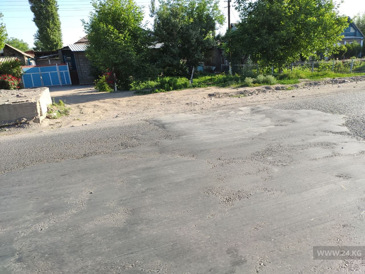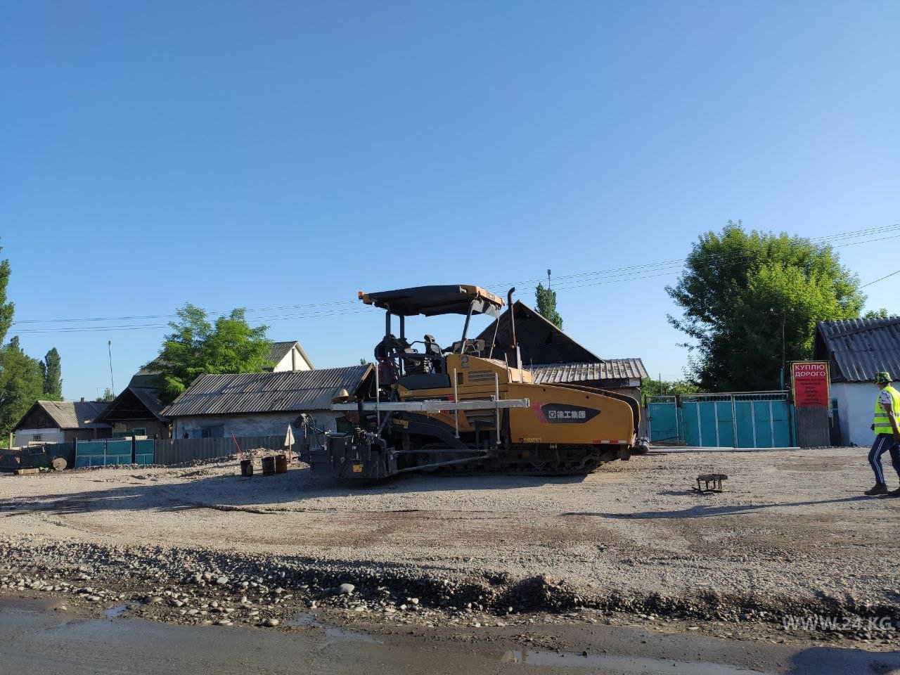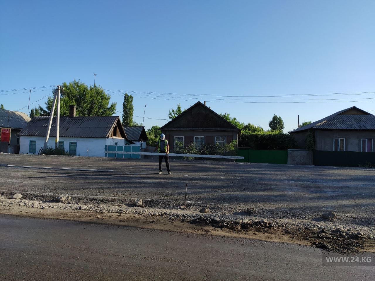 Пока все сидели в карантине, ремонт трассы продолжался. Например, сняли асфальт на въезде и в центре села Беловодское. Новый здесь пока не появился. Поэтому проезжать участок приходится либо в пыли, либо в грязи, если дорогу успели полить водой. То и дело подскакиваешь на кочках.