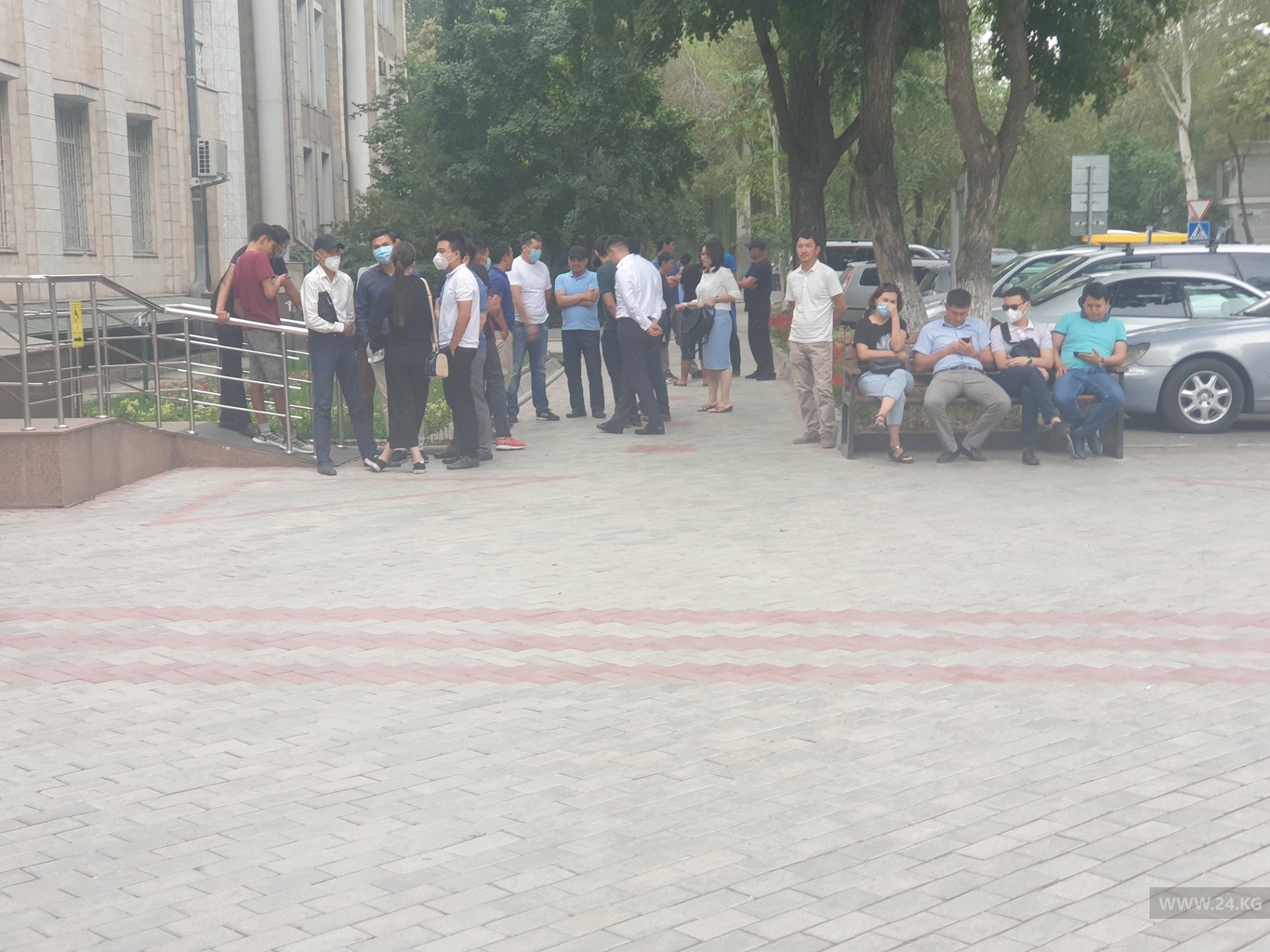 Около 100 человек ожидают итогов расширенного заседания комиссии. По неподтвержденным данным, часть присутствующих поддерживают партию «Кыргызстан».