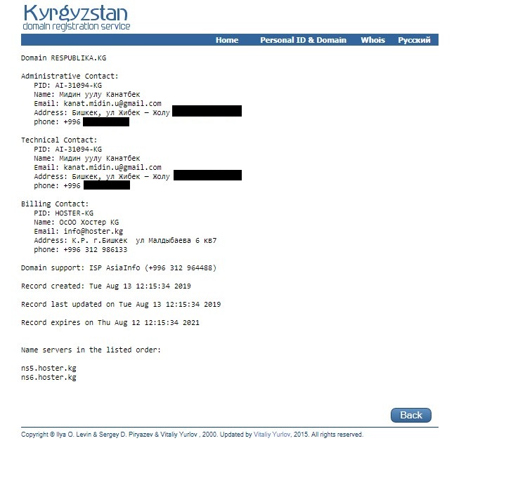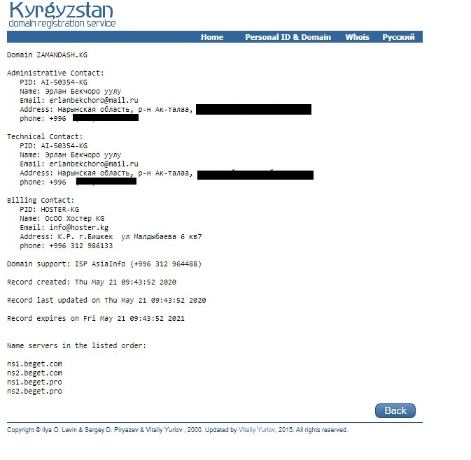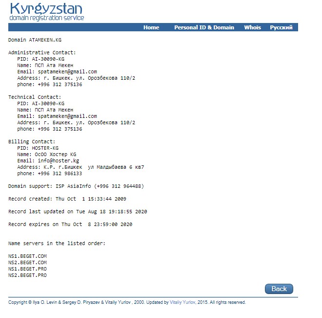 Информация о владельце домена и дате регистрации ресурса закрыта. Известно лишь то, что он был создан в Чуйской области.