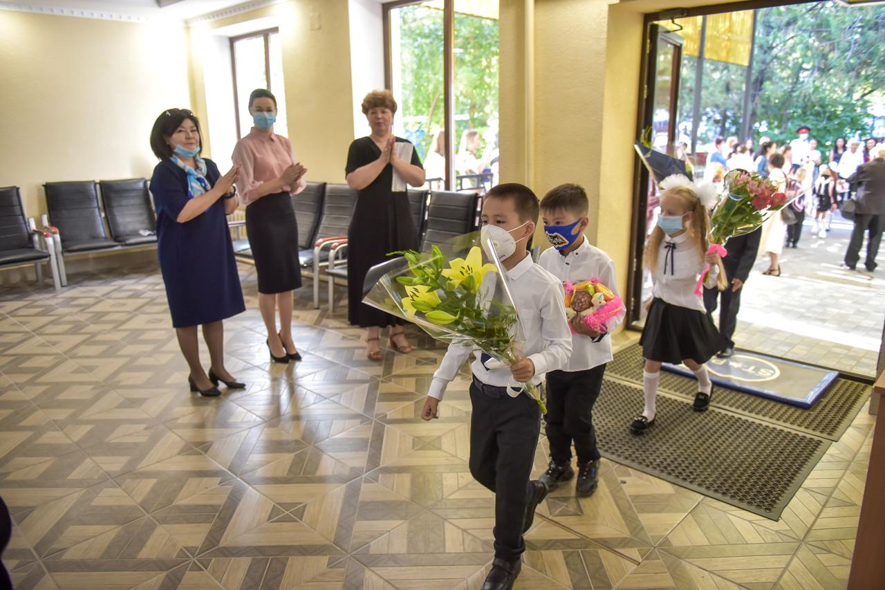 По ее данным, COVID-19 внес свои коррективы — торжественной линейки не было. Вице-мэр столицы по социальной политике Виктория Мозгачева, руководитель аппарата столичной мэрии Адилет Малдыбаев и акимы районов встретили первоклашек и сопровождали их в классы.
